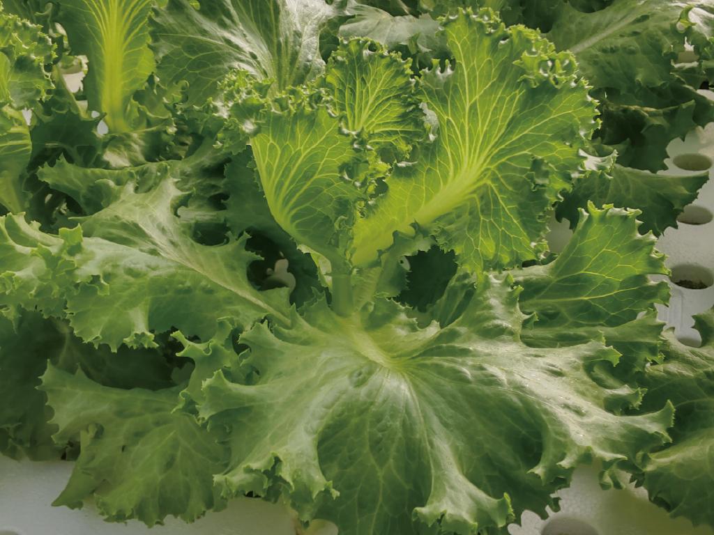 葉形はフレア状に波打ち、葉色は淡いライムグリーンをしたリーフレタスです。丈が低くコンパクトに見えるが、見た目以上に葉数が多くて重量もずっすりとしています。甘味と苦味のバランスが良くて食べやすいので、野菜が苦手なお子様にもオススメです。